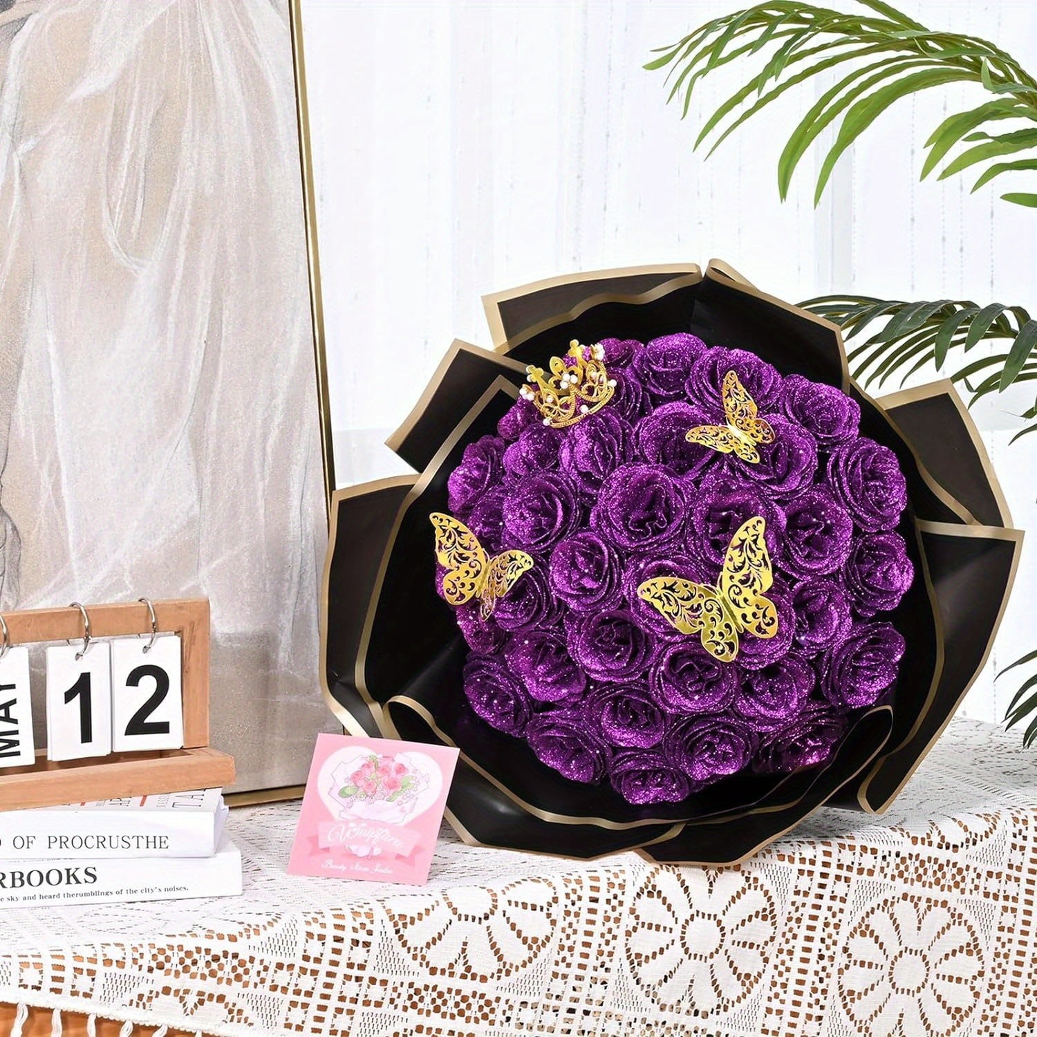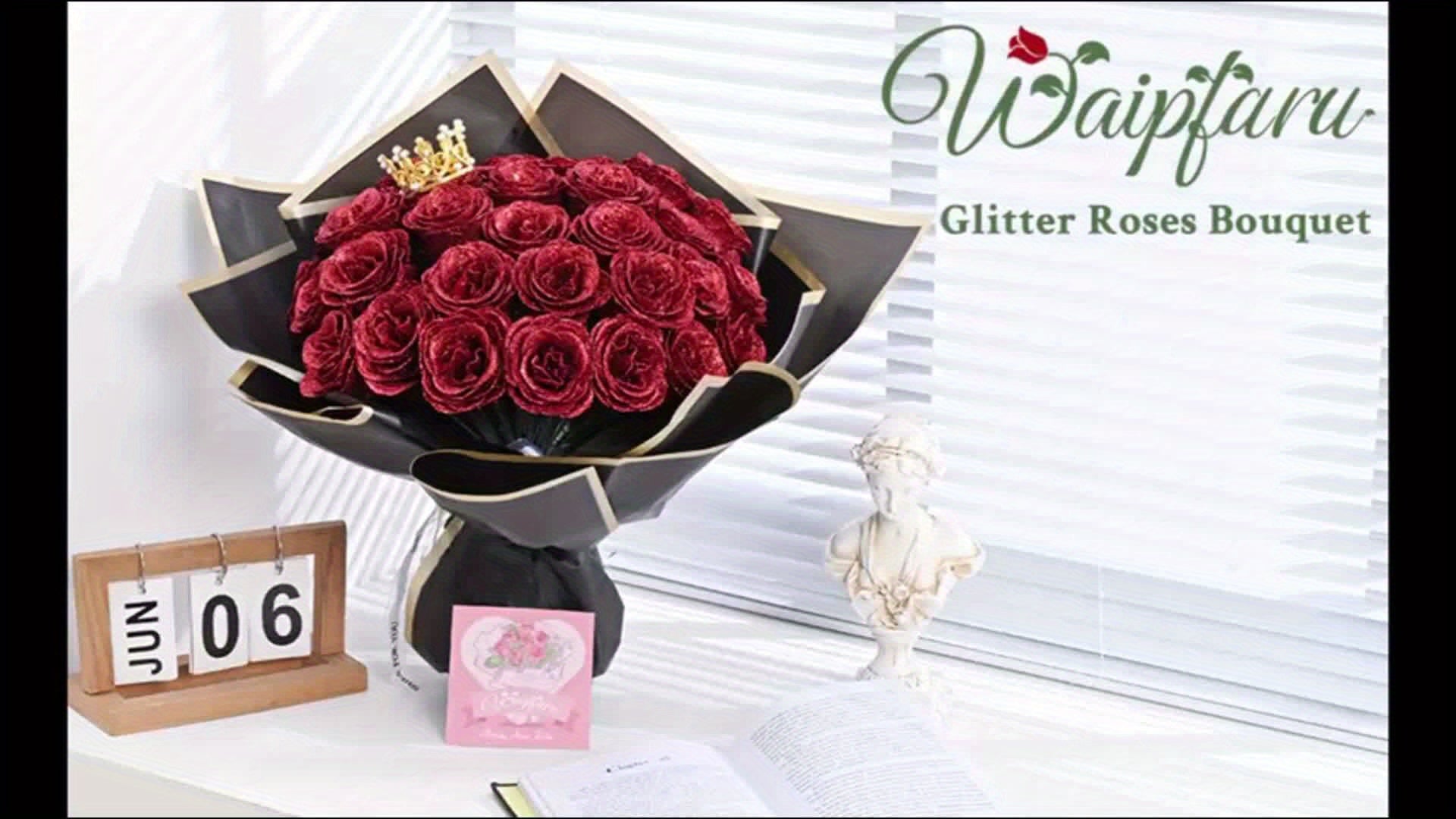 24/36pcs Glitter Roses Bouquet, DIY Fake Glitter Flowers Bouquet, Everlasting Shiny Artificial Red Rose Bouquet for Mothers Day Gifts, Anniversary, Engagement, Wedding Festival Gatherings and Home Decorations